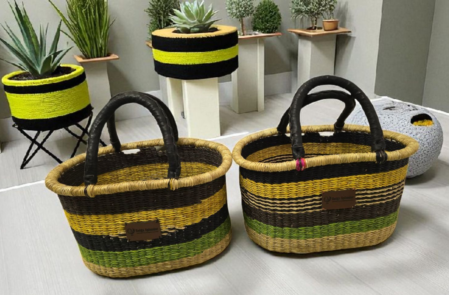 Part of our Bolga Splendor Collection, they are handmade by our Fair Trade Partners at Ayebase Enterprise, ensuring every purchase supports skilled artisans and their communities. Add a touch of elegance to your bike rides while making a positive impact!