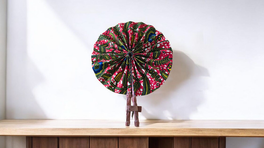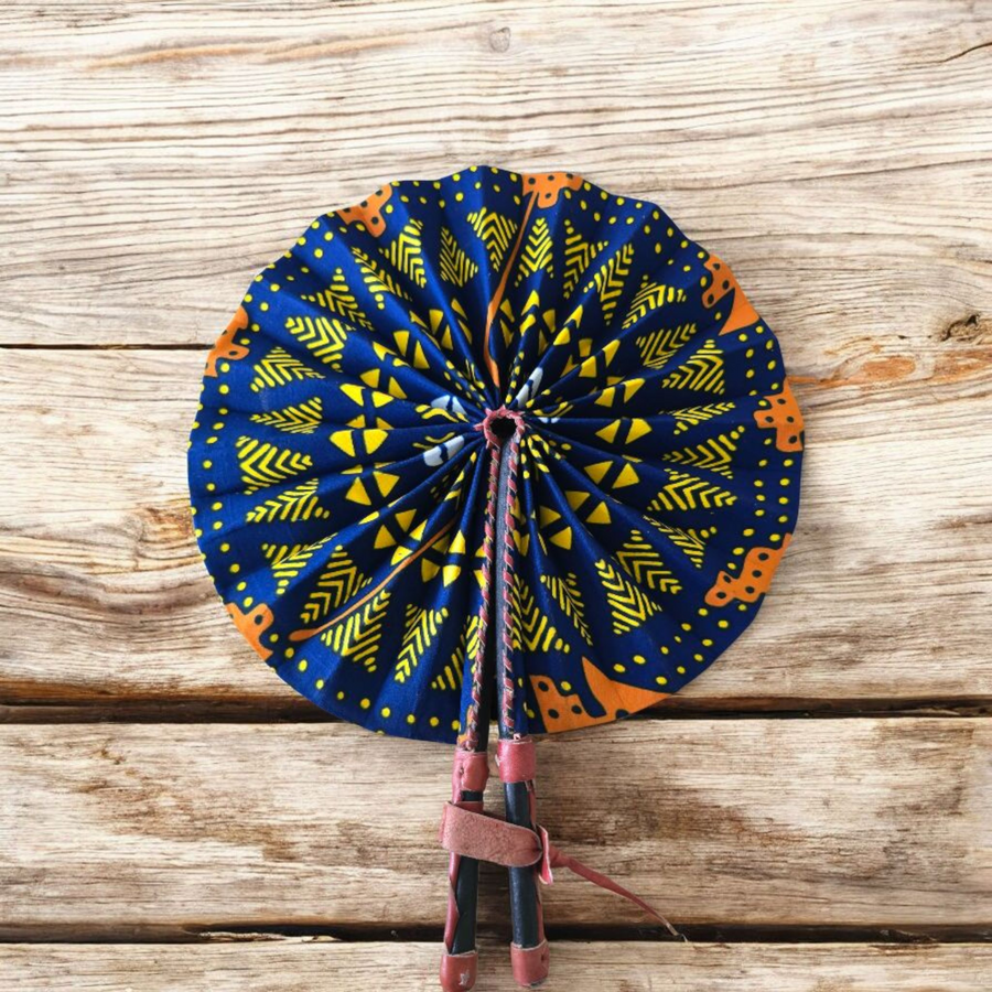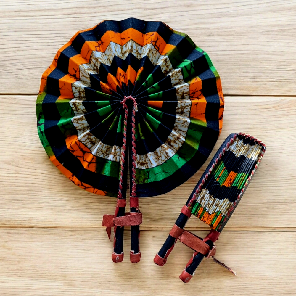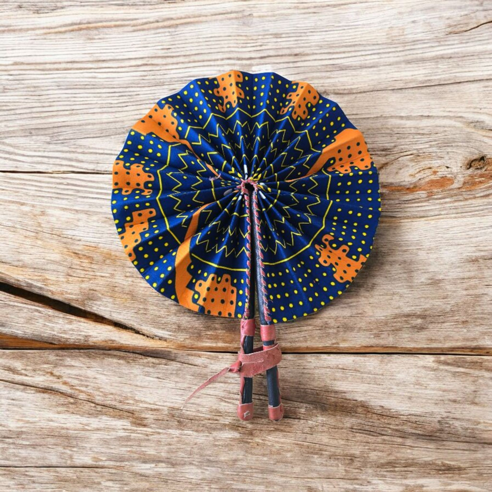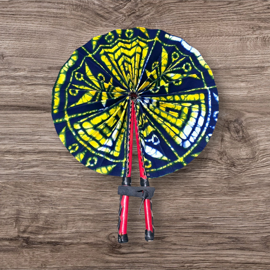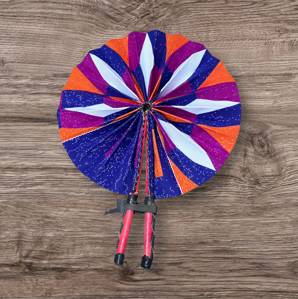 Celebrate your artistry with our beautifully crafted foldable Ankara fan by our talented artisan and Fair Trade Partner, Mr. Amoah. Each fan showcases vibrant Ankara fabric and traditional Ghanaian craftsmanship, making it a cooling accessory and a piece of art.
