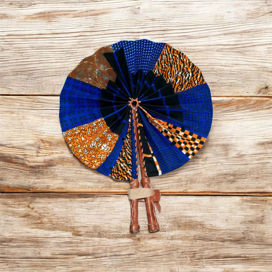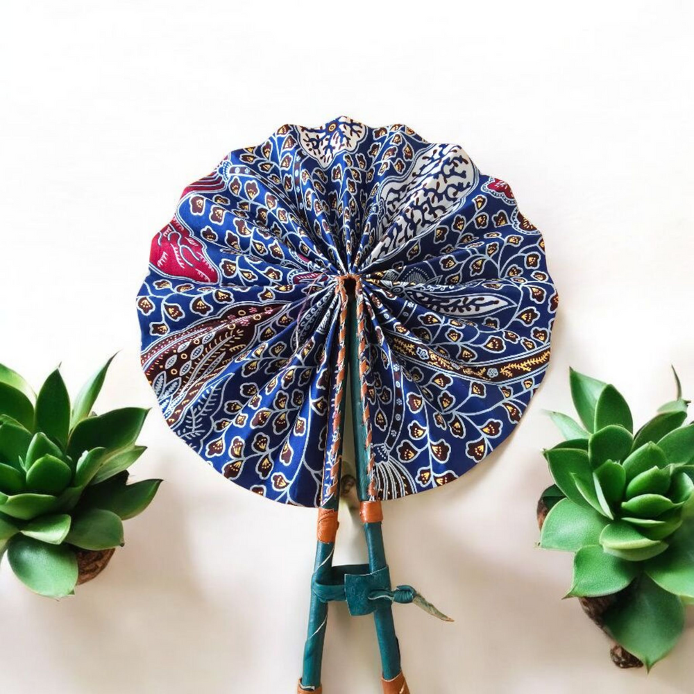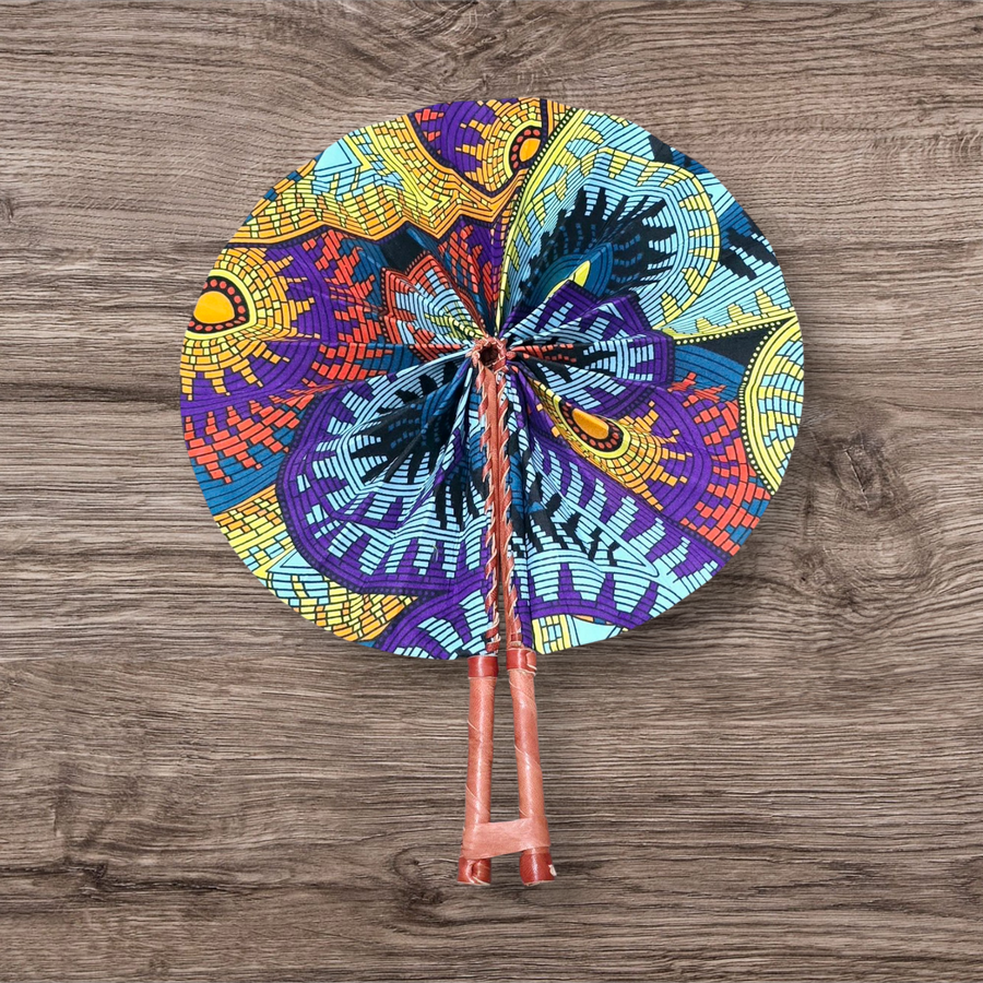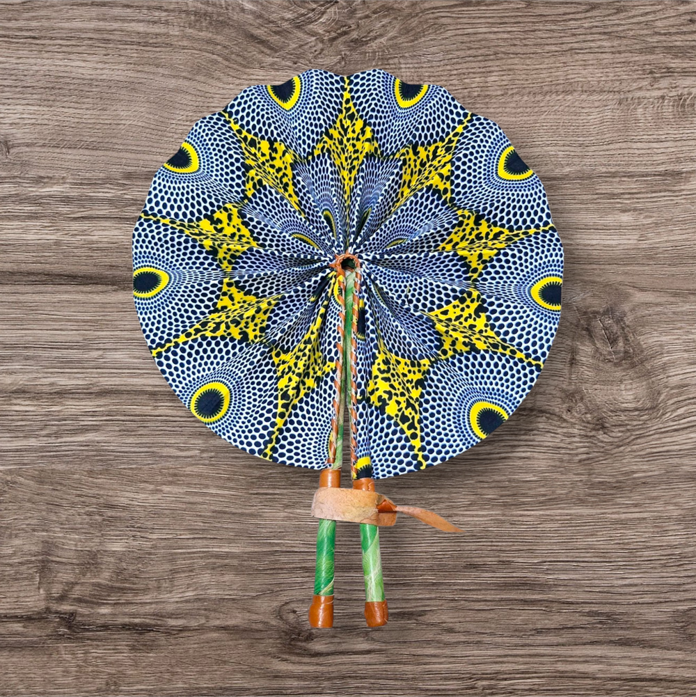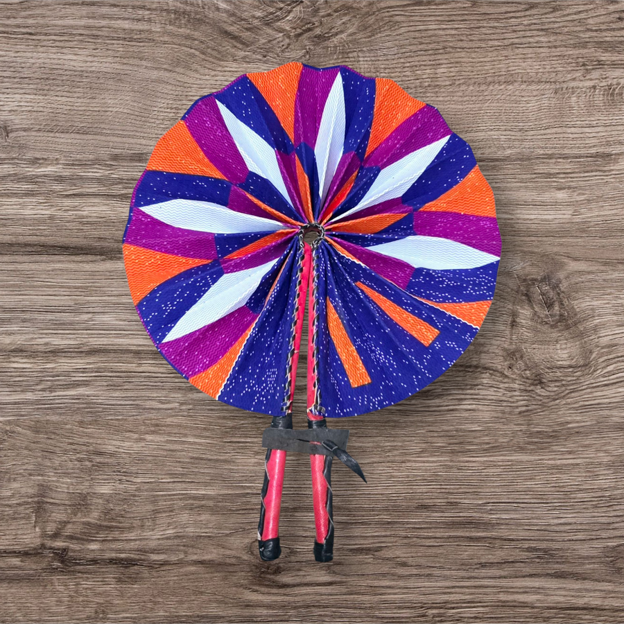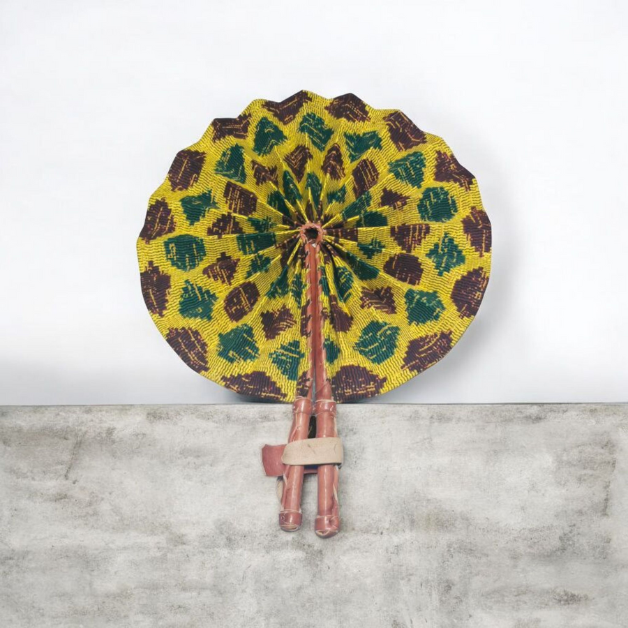 Celebrate your artistry with our beautifully crafted foldable Ankara fan by our talented artisan and Fair Trade Partner, Mr. Amoah. Each fan showcases vibrant Ankara fabric and traditional Ghanaian craftsmanship, making it a cooling accessory and a piece of art.