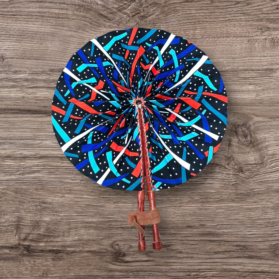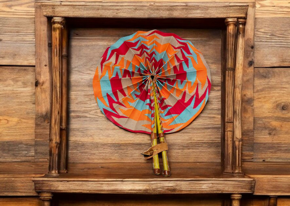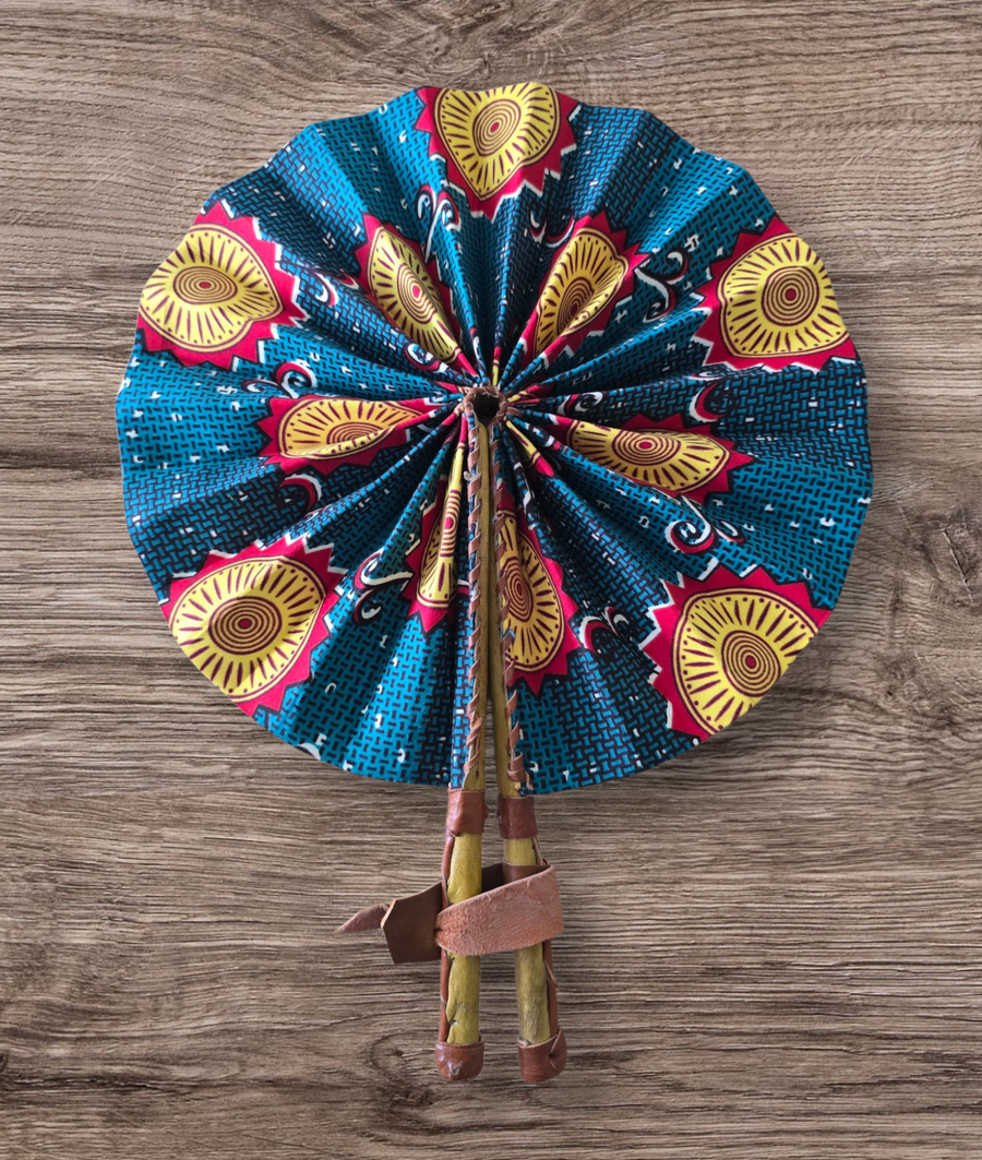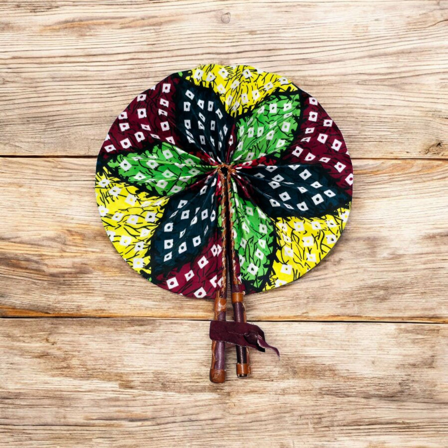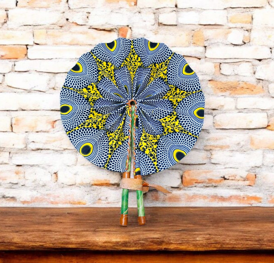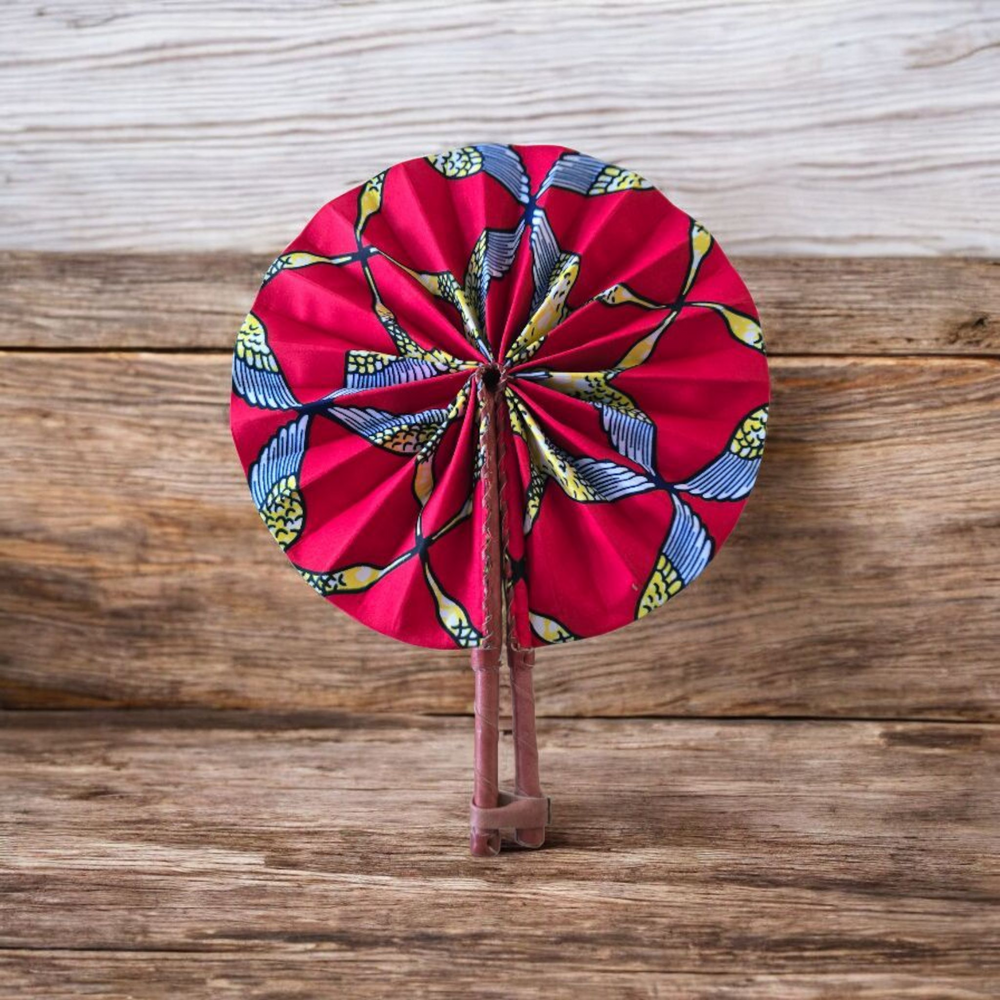 Celebrate your artistry with our beautifully crafted foldable Ankara fan by our talented artisan and Fair Trade Partner, Mr. Amoah. Each fan showcases vibrant Ankara fabric and traditional Ghanaian craftsmanship, making it a cooling accessory and a piece of art.