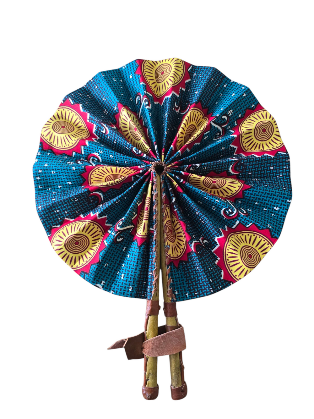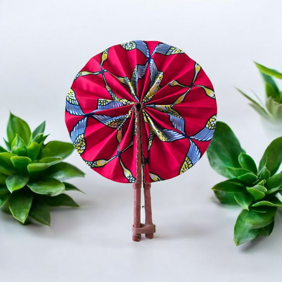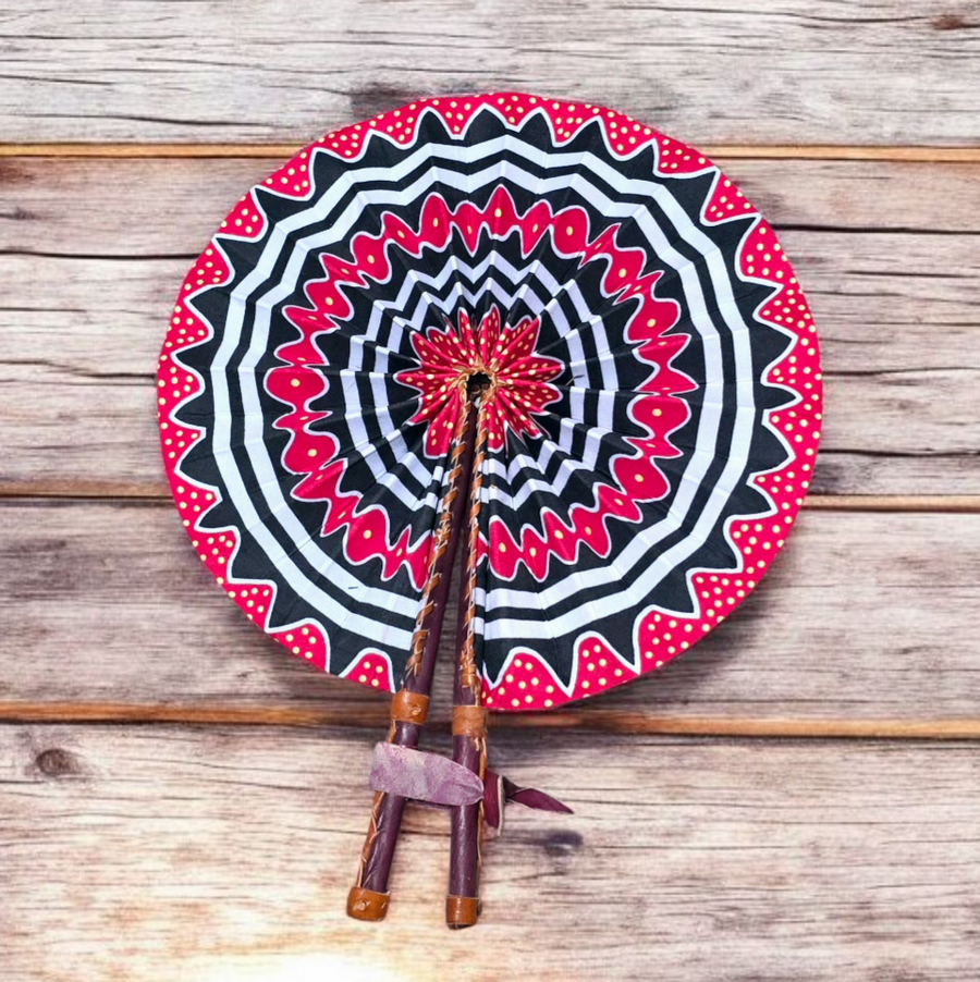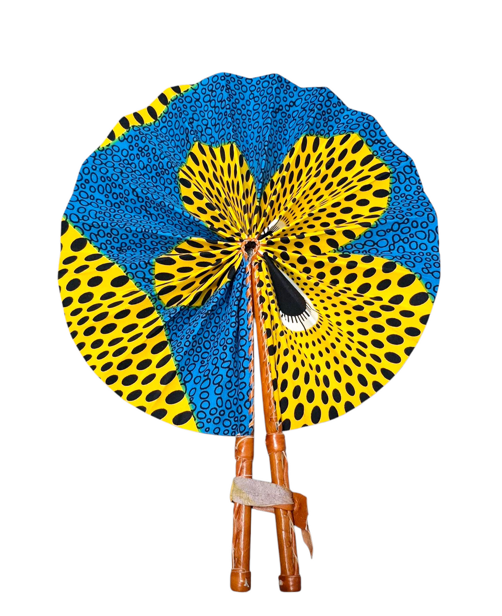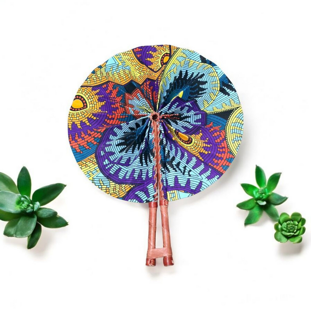 Celebrate your artistry with our beautifully crafted foldable Ankara fan by our talented artisan and Fair Trade Partner, Mr. Amoah. Each fan showcases vibrant Ankara fabric and traditional Ghanaian craftsmanship, making it a cooling accessory and a piece of art.
