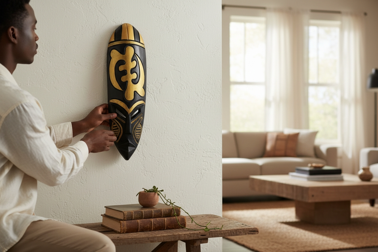 Experience the beauty and depth of Ghanaian culture with each handcrafted mask. Made from genuine Sese wood by our skilled artisan, Mr. Vitus Amoah, these masks display vibrant colors and intricate designs that capture the spirit of Ghana. Adorned with meaningful Adinkra symbols, each mask holds its own powerful story, making it a unique and inspiring addition to any space.