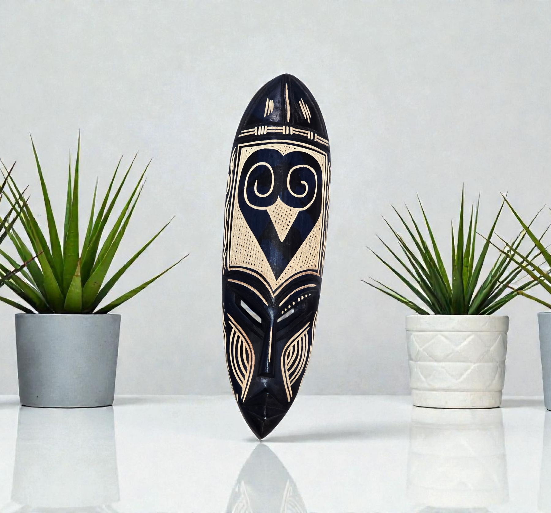 Experience the beauty and depth of Ghanaian culture with each handcrafted mask. Made from genuine Sese wood by our skilled artisan, Mr. Vitus Amoah, these masks display vibrant colors and intricate designs that capture the spirit of Ghana. Adorned with meaningful Adinkra symbols, each mask holds its own powerful story, making it a unique and inspiring addition to any space.