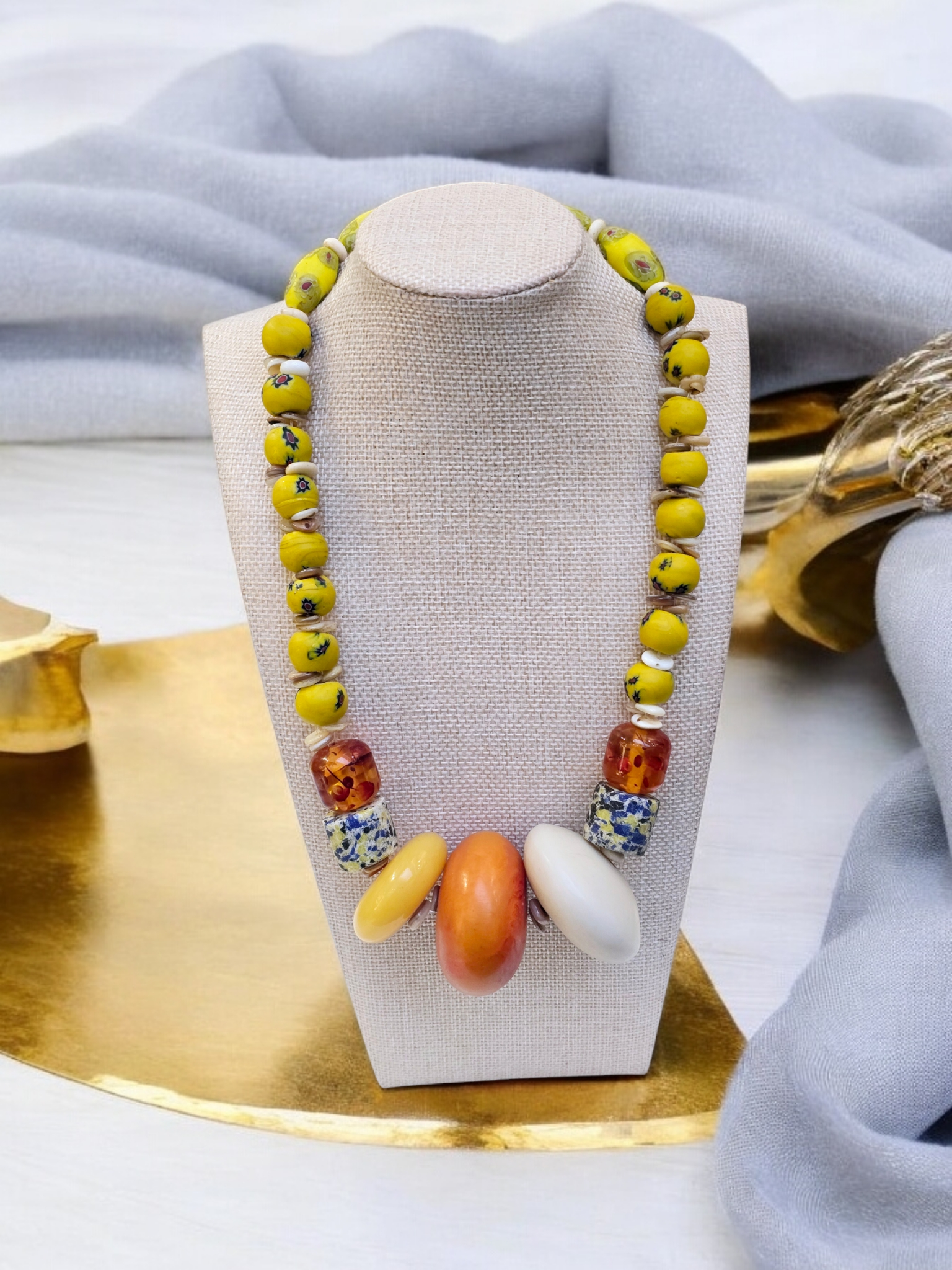 Our handmade necklaces are crafted with care by our partners, who bring a touch of culture and tradition to each piece. These necklaces aren't just accessories—they carry stories of heritage and craftsmanship. Whether you're looking for something bold or subtle, each design reflects the beauty of Ghanaian artistry. These necklaces are perfect for everyday wear or special occasions and add a unique and meaningful touch to your style.