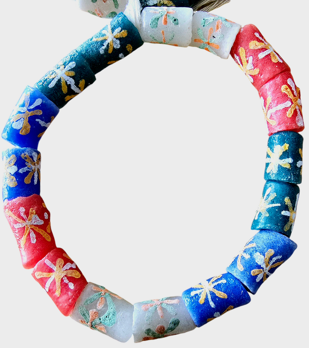 These beautiful, handmade Krobo beads are crafted carefully by talented artisans in Ghana. Each bead is a tiny work of art. Hand-painted in vibrant colors and unique patterns, they bring Ghana's rich cultural heritage to life. Whether you wear them as is or use them in your creative projects, these beads carry the warmth and spirit of the hands that made them. Perfect for adding a touch of authenticity and meaning to any piece.