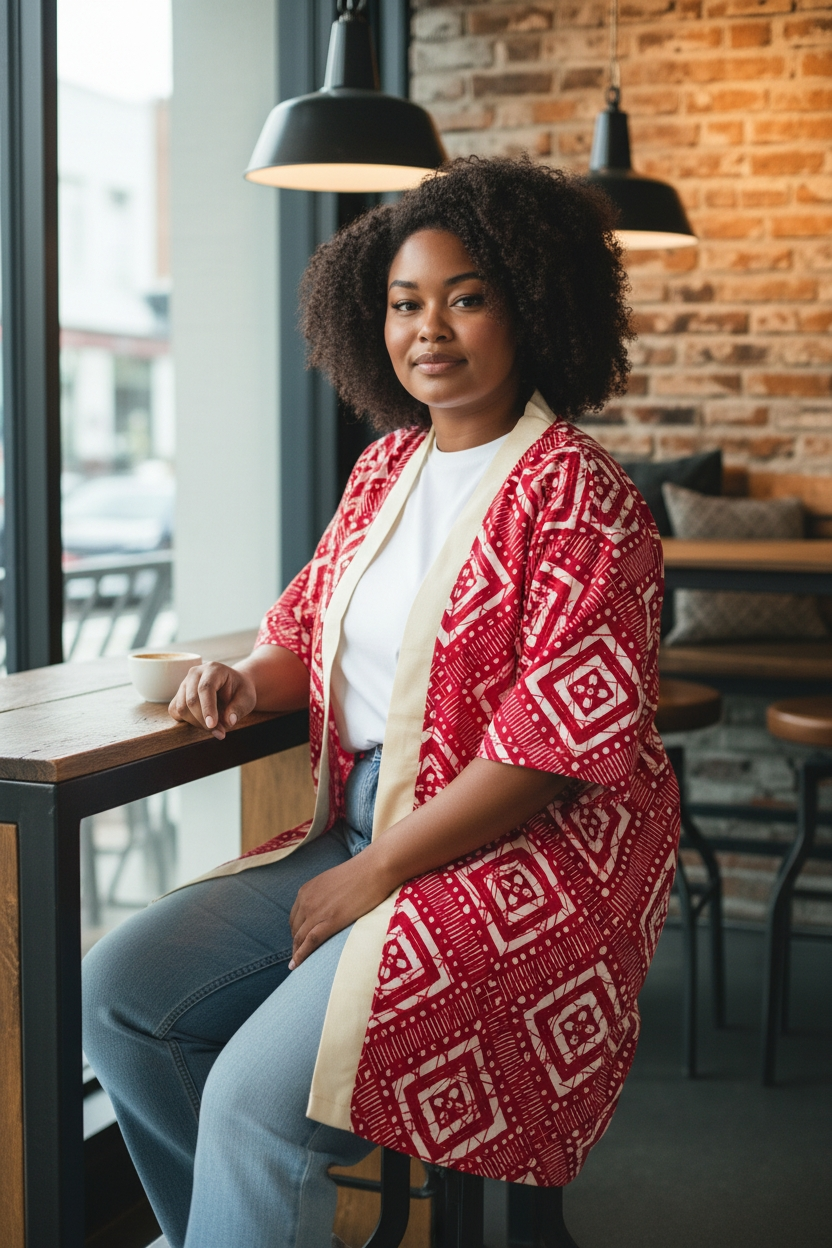 Designed with a relaxed, open silhouette, these kimonos are expressive yet effortless; easy to layer, easy to style, and made to move with you. Whether worn as a statement layer or styled simply, they celebrate identity, individuality, and cultural pride—rooted in tradition and made with care.