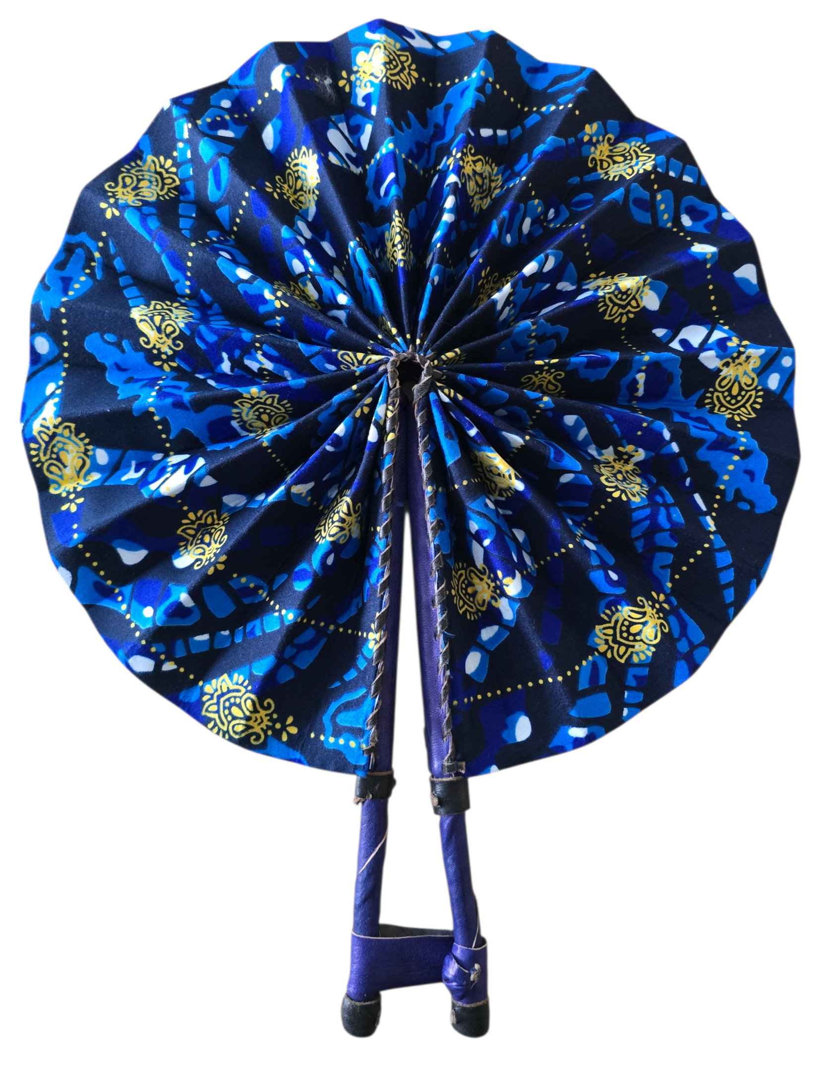 Each fan showcases vibrant Ankara fabric and traditional Ghanaian craftsmanship, making it a cooling accessory and a piece of art.