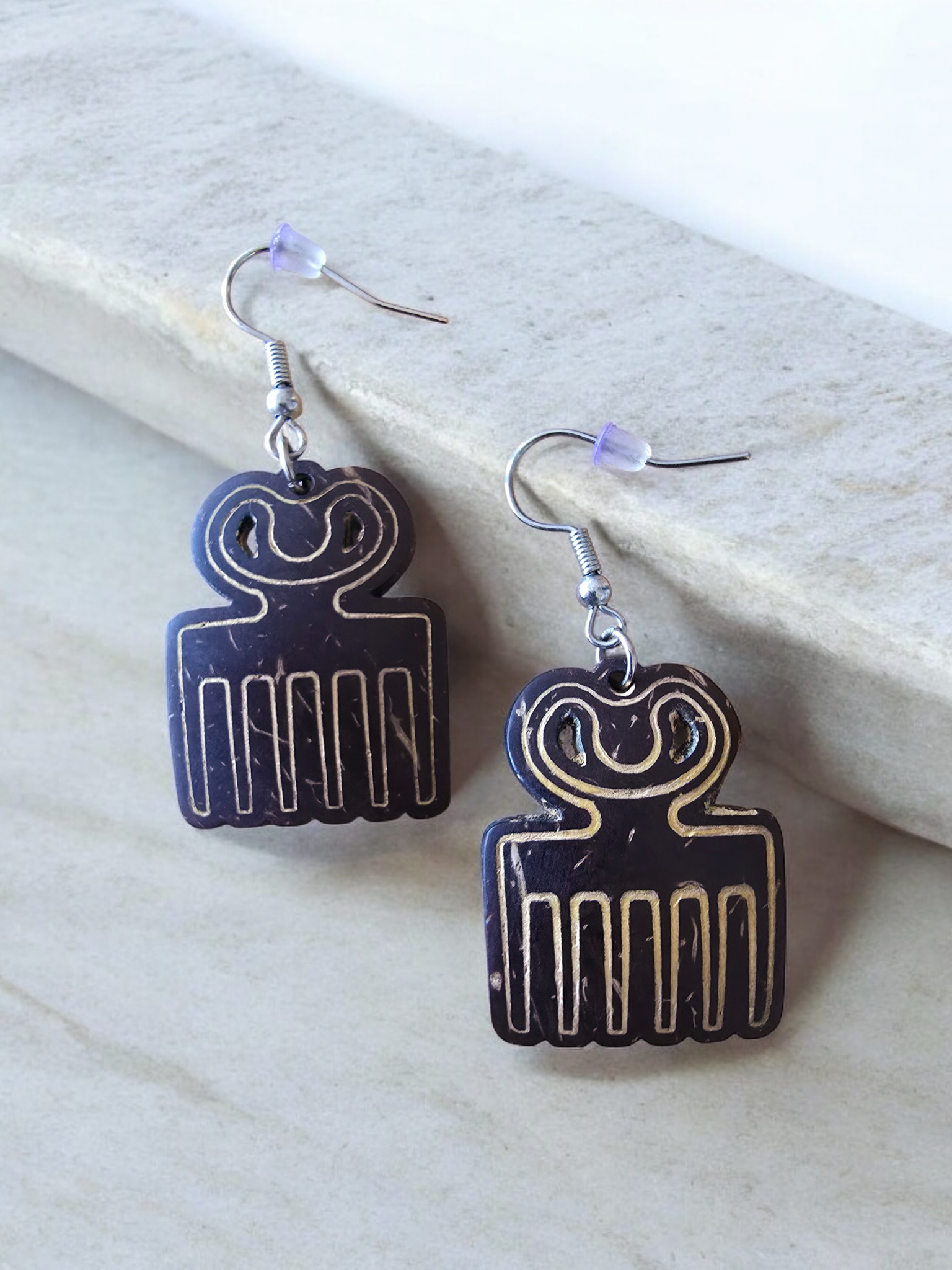 Gracefully handcrafted from upcycled coconut shells, the Adom Shell Drop earrings are a tribute to simplicity, beauty, and sustainability. The word Adom, meaning "grace" in Akan, perfectly captures the essence of these earrings—lightweight, earthy, and full of character.