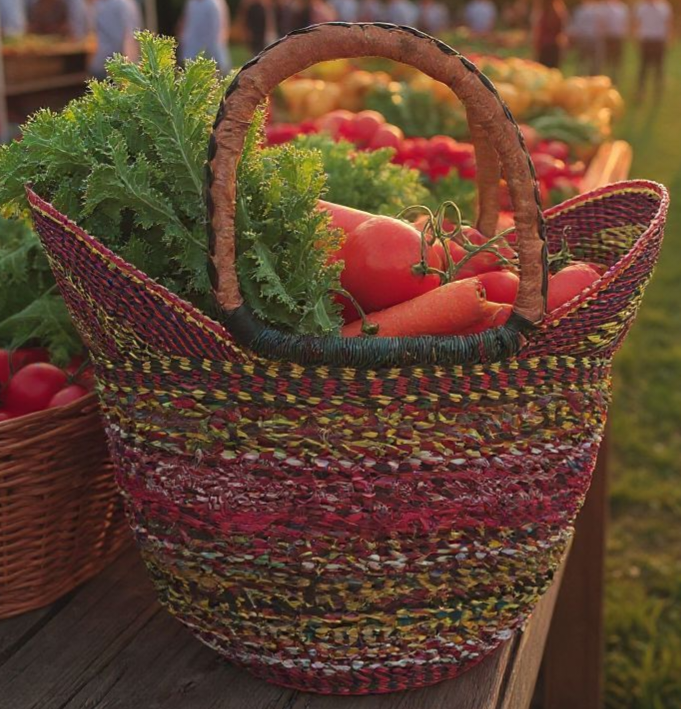 Bolga Basket with Ankara Accent – Handwoven & Upcycled