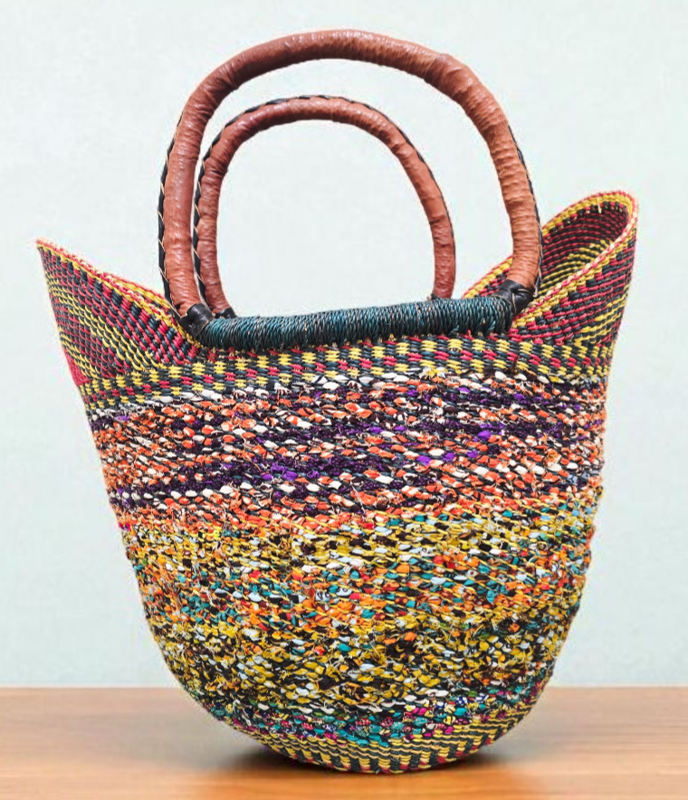 Bolga Basket with Ankara Accent – Handwoven & Upcycled-ORG