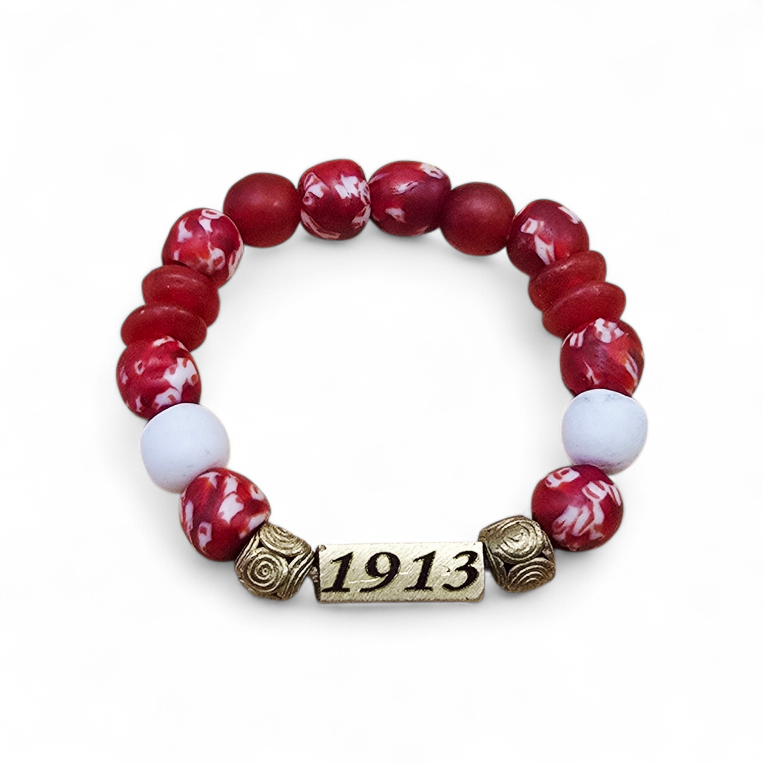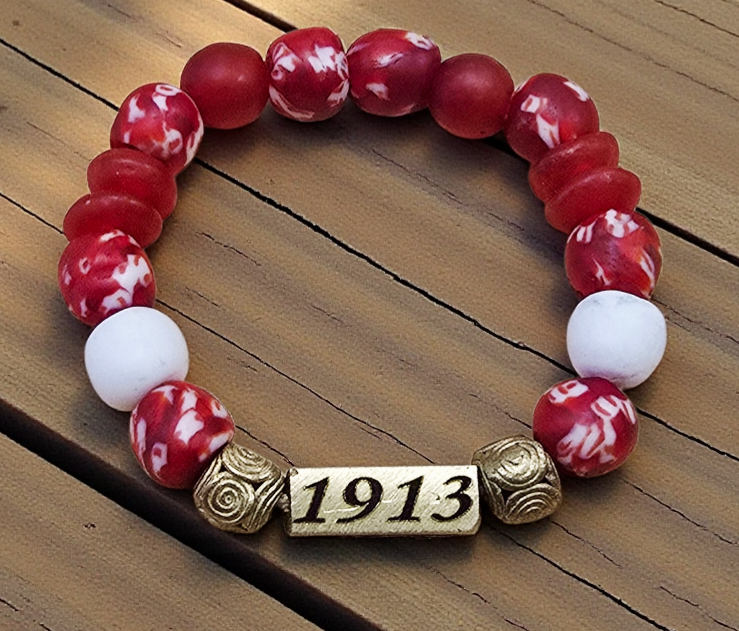 Each bracelet is handcrafted using recycled glass beads, thoughtfully paired with brass accents and a custom brass plate engraved with meaningful details such as a founding year, symbolic animal, or phrase that reflects the heart of each Divine Nine organization. Together, these elements tell a story of resilience, identity, and collective pride.