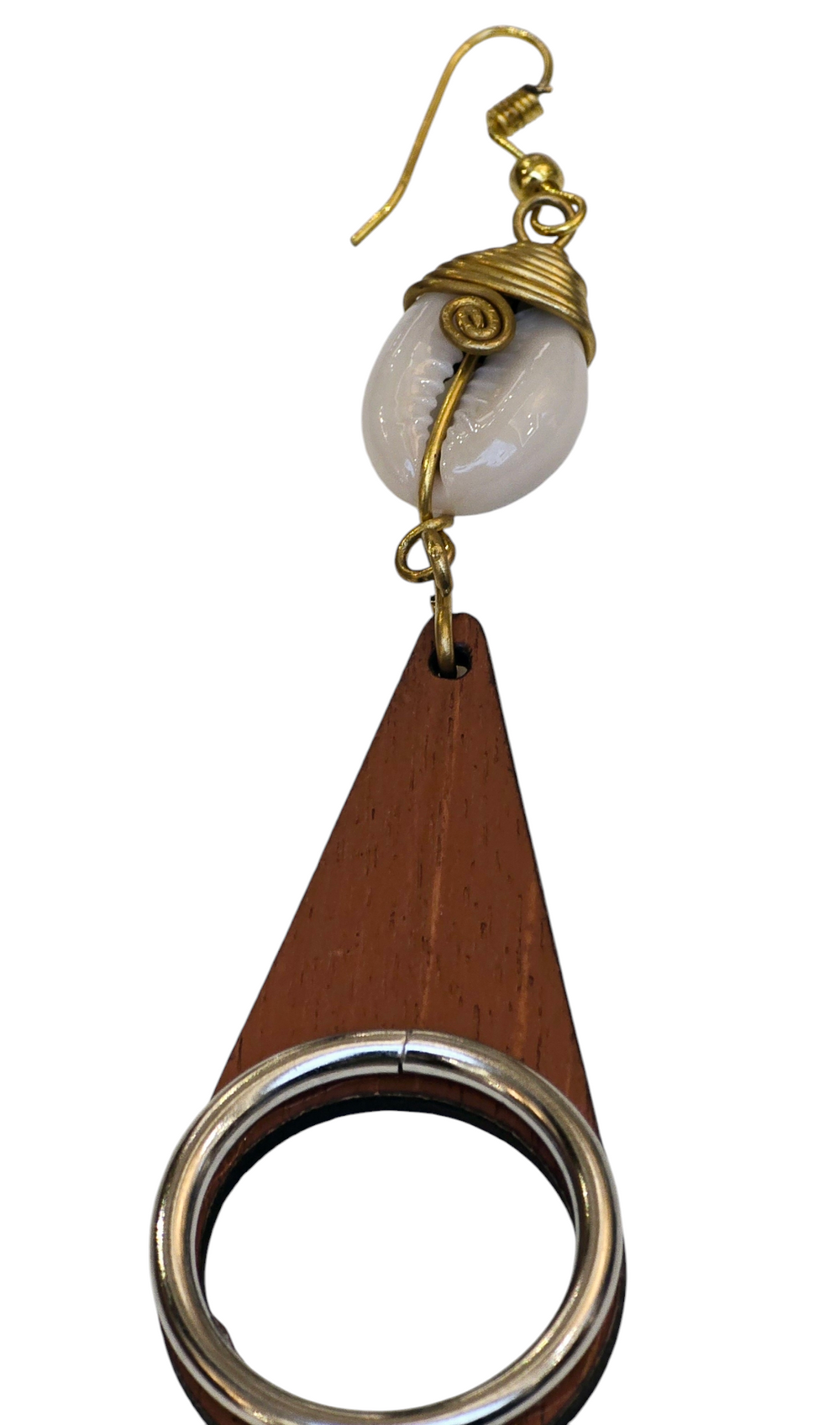 Handcrafted wooden and cowrie, a symbol of money and wealth earrings create a stylish statement for any look! Make a bold, unique fashion statement with this one-of-a-kind accessory! Daavi earrings bring an element of sophistication and style to any outfit.