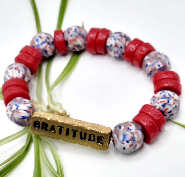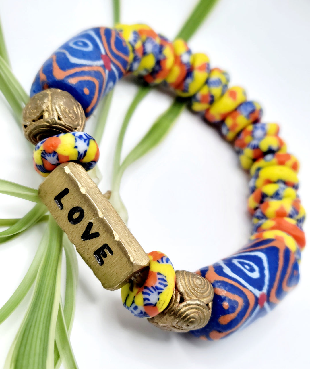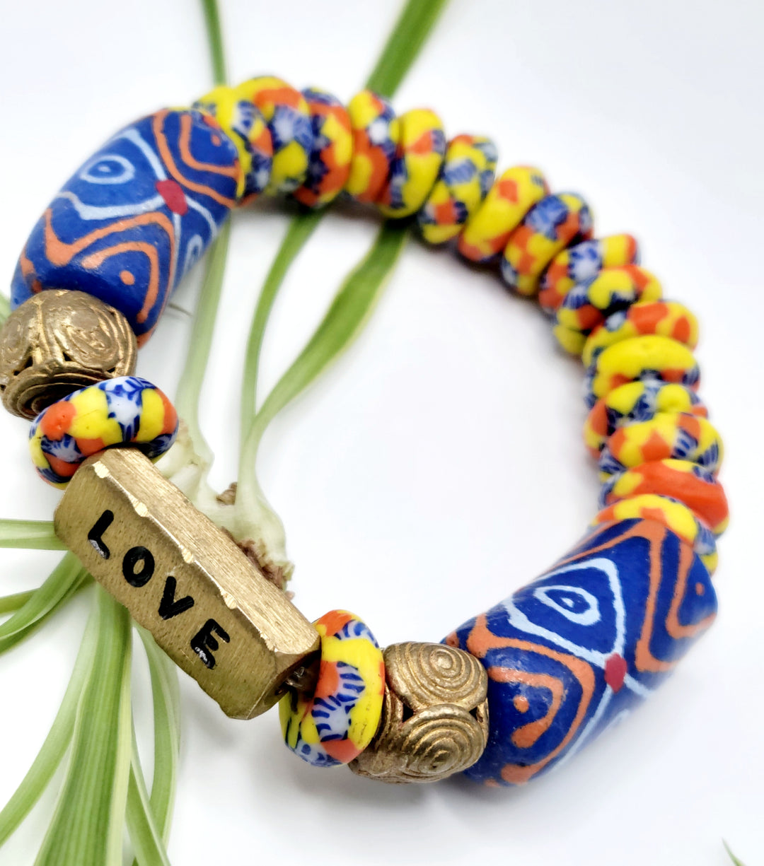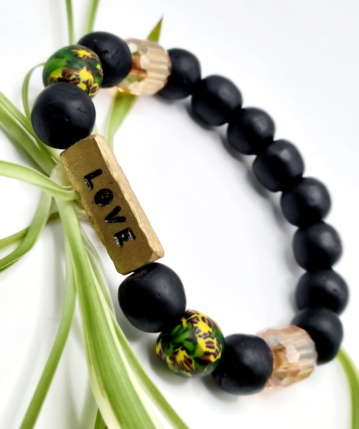 The "Asempa Band" is a thoughtfully crafted bracelet collection that embodies the essence of sustainability, creativity, and inspiration. Each piece in this collection is meticulously designed with a combination of recycled glass and brass plates, creating a harmonious blend of eco-friendly materials and artistic expression.