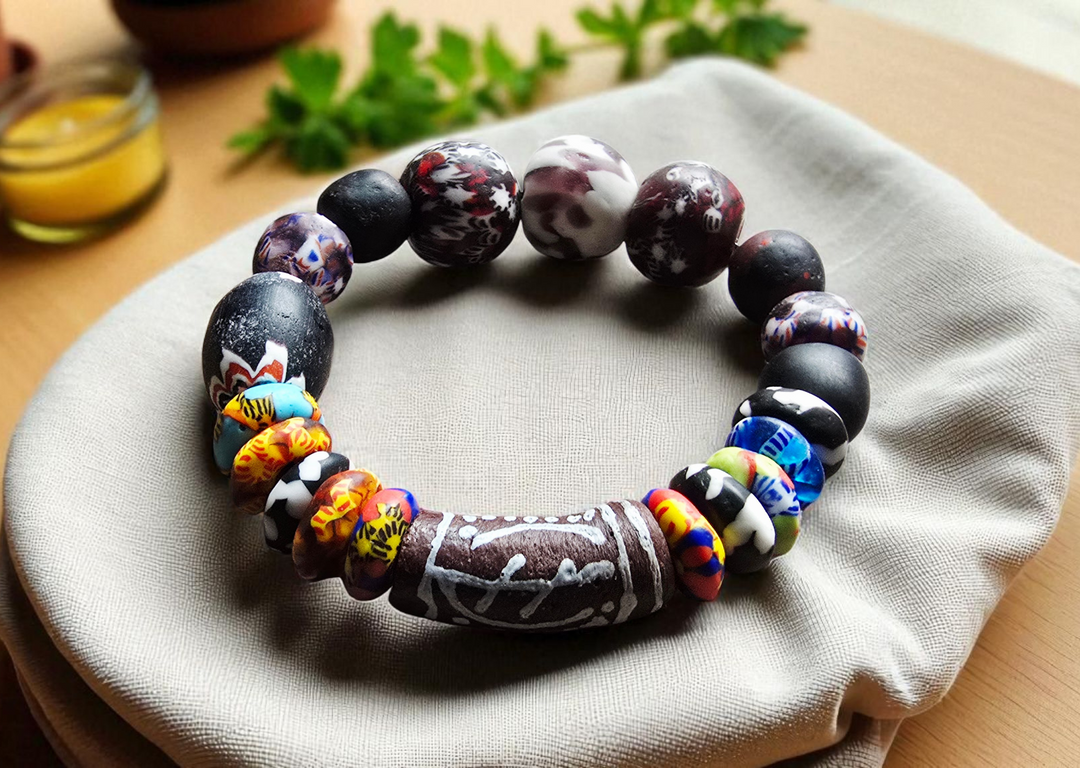 Features a symbolic, hand-painted Adinkra accent bead