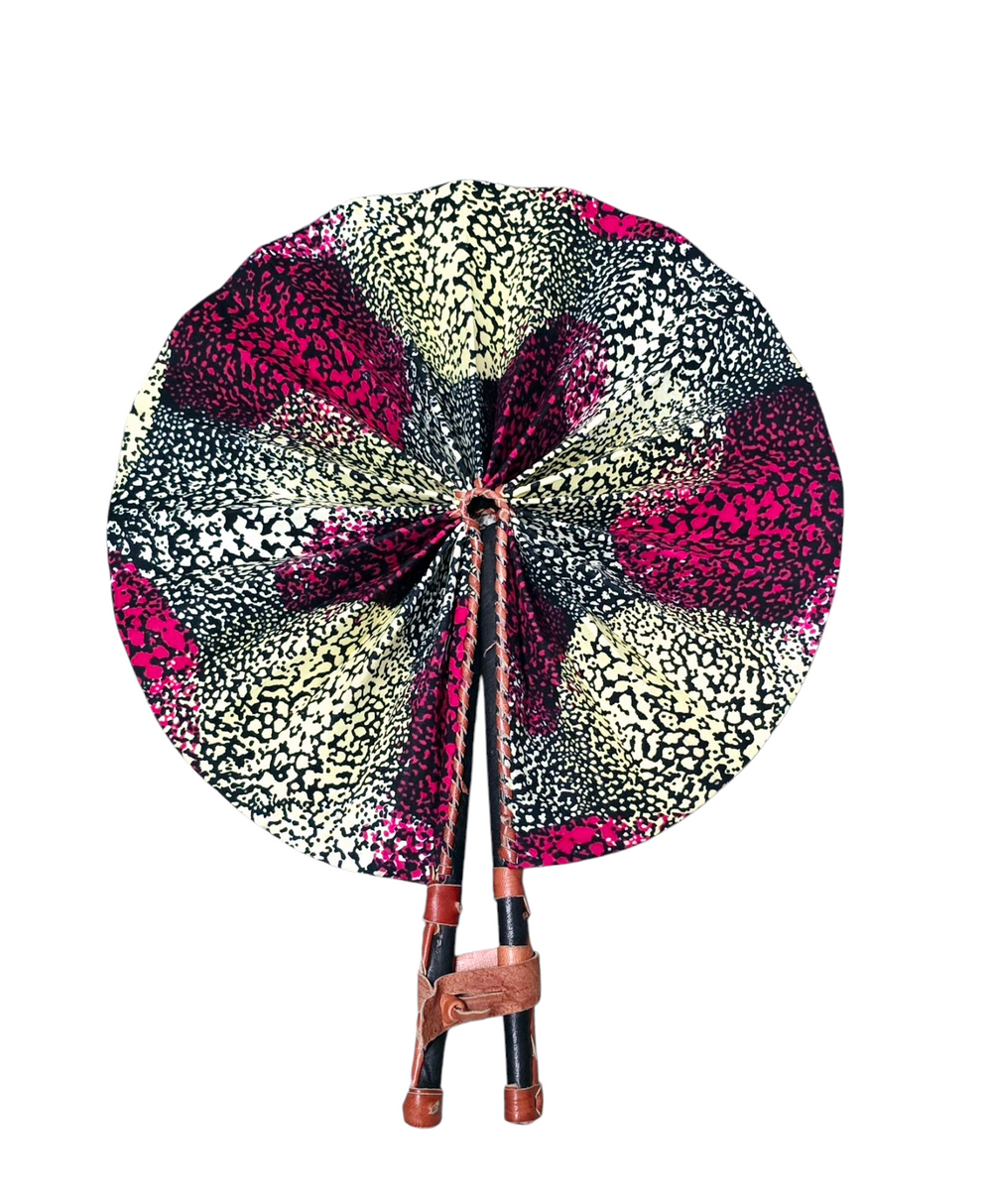 Each fan showcases vibrant Ankara fabric and traditional Ghanaian craftsmanship, making it a cooling accessory and a piece of art.