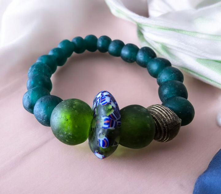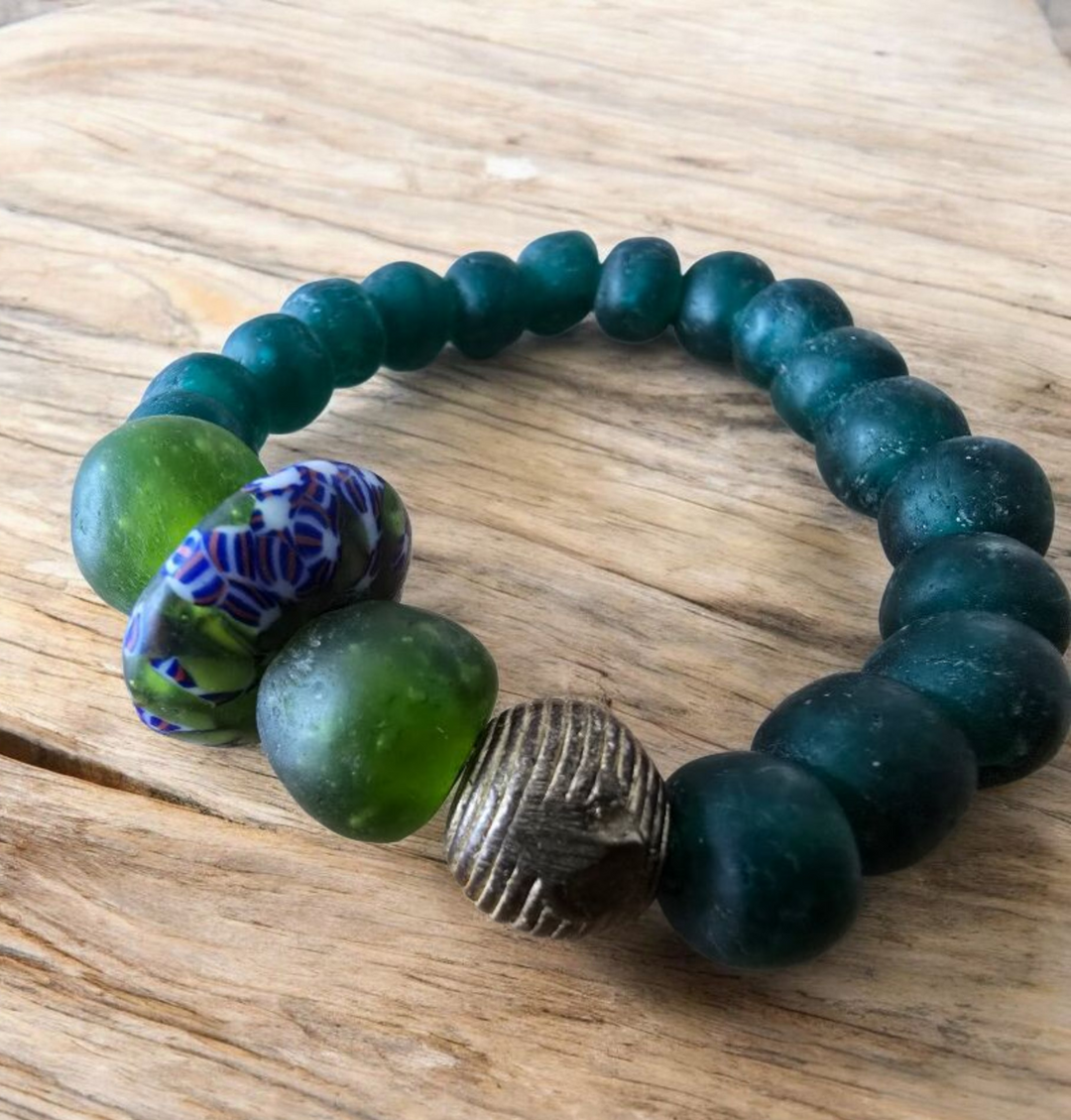 The hand-crafted process and unique blend of recycled glass beads give the Dzorlo Bracelet an incomparable style and one-of-a-kind beauty. With such traditional craftsmanship, it's a timeless piece to cherish and pass down. The process also results in natural variations in color and size, lending to the charm of these unique and timeless pieces.