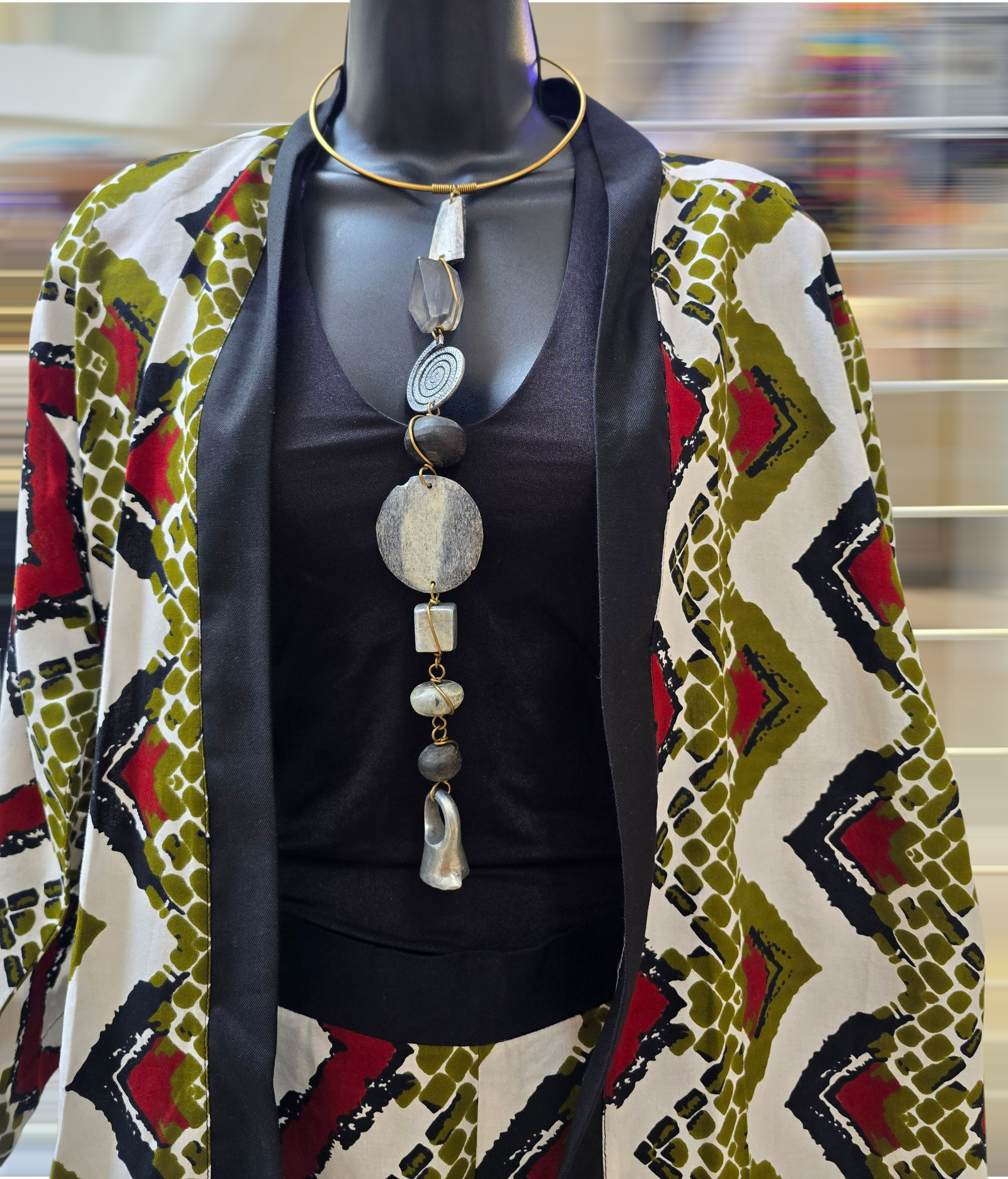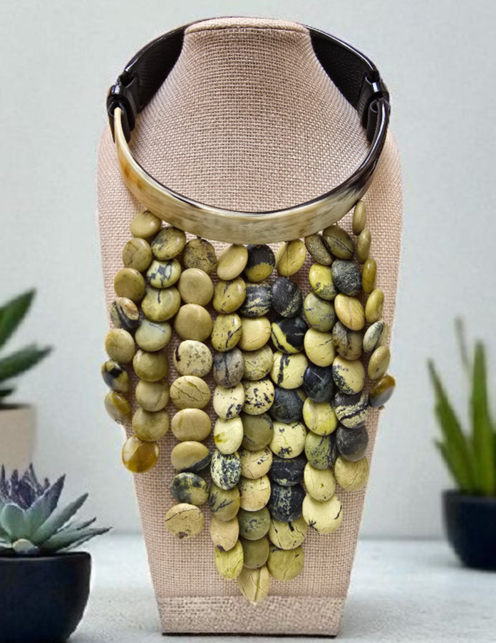 Our handmade necklaces are crafted with care by our partners, who bring a touch of culture and tradition to each piece. These necklaces aren't just accessories—they carry stories of heritage and craftsmanship. Whether you're looking for something bold or subtle, each design reflects the beauty of Ghanaian artistry. These necklaces are perfect for everyday wear or special occasions and add a unique and meaningful touch to your style.