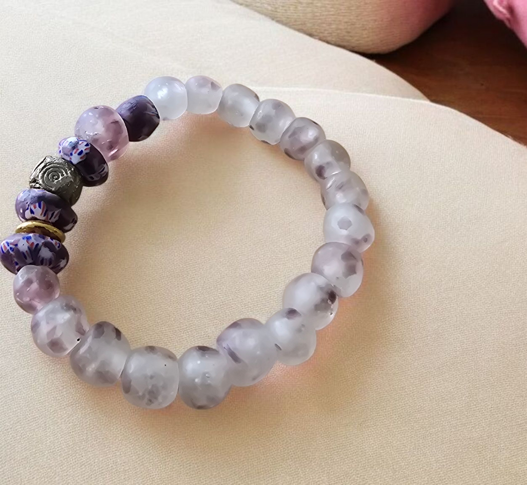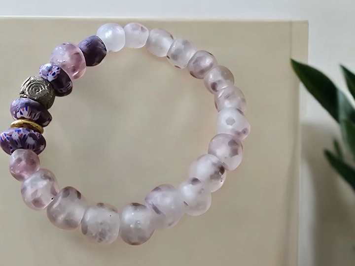The hand-crafted process and unique blend of recycled glass beads give the Dzorlo Bracelet an incomparable style and one-of-a-kind beauty. With such traditional craftsmanship, it's a timeless piece to cherish and pass down. The process also results in natural variations in color and size, lending to the charm of these unique and timeless pieces.