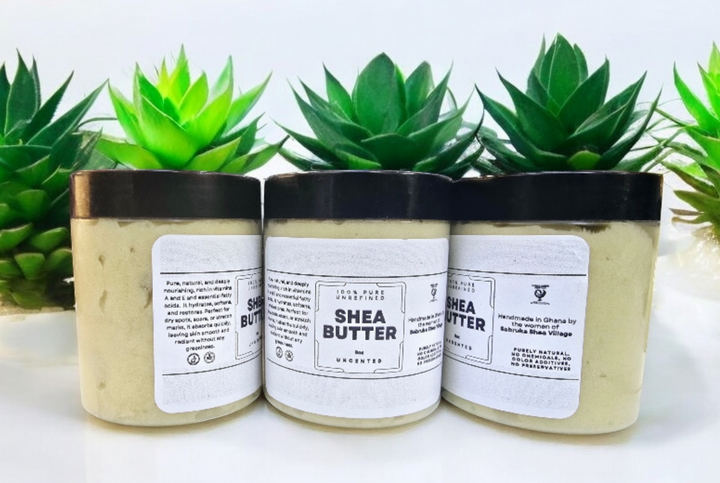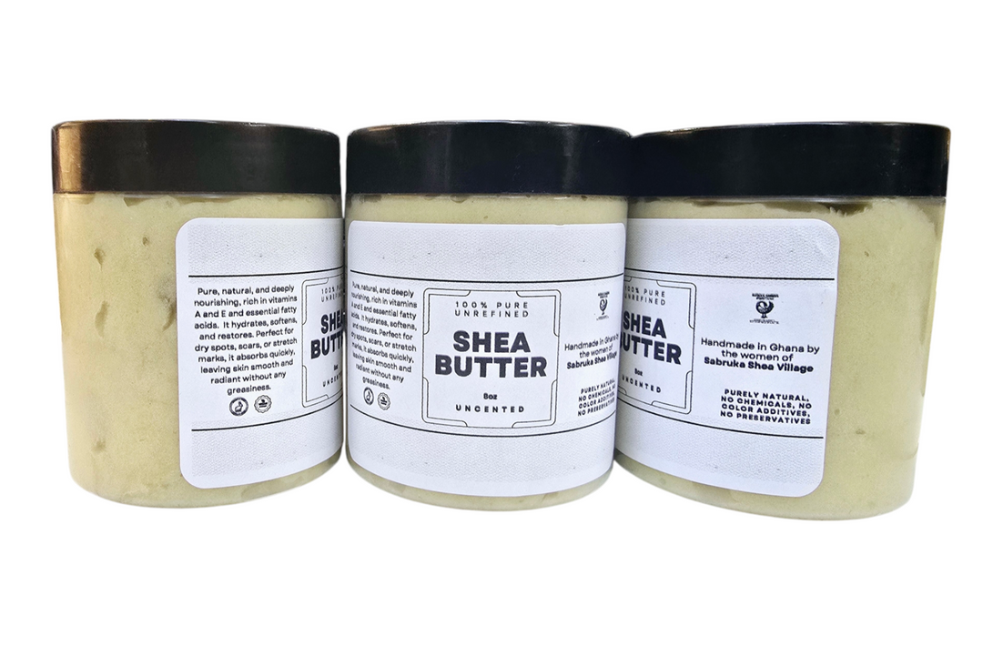 Treat your skin to the luxurious care of 100% Pure and Unrefined Ghanaian Shea Butter. Handcrafted by the women of Sabruka Shea Village, this all-natural butter is more than just skincare—it’s a tradition passed down through generations, a labor of love, and a lifeline for the incredible artisans who produce it.