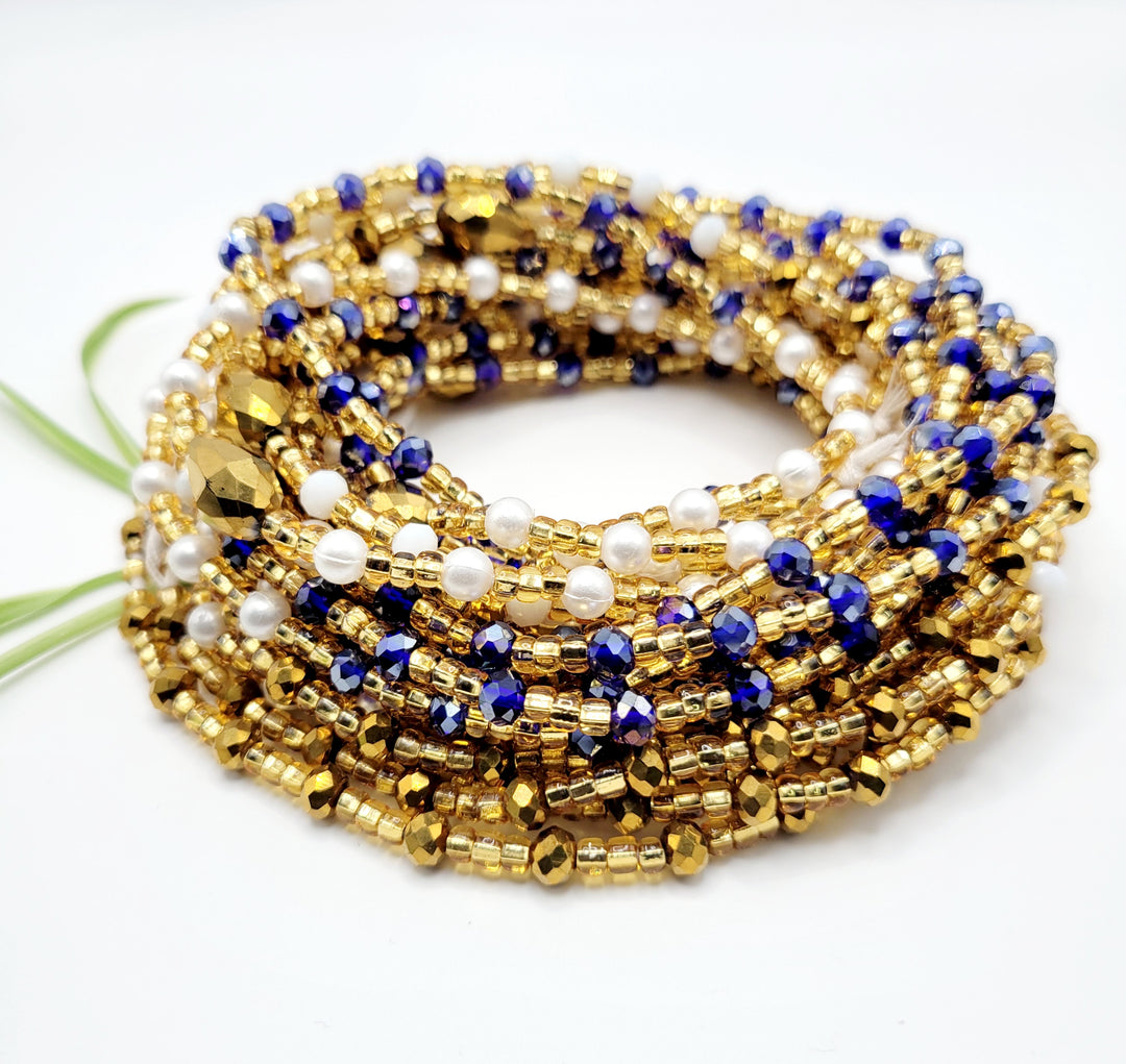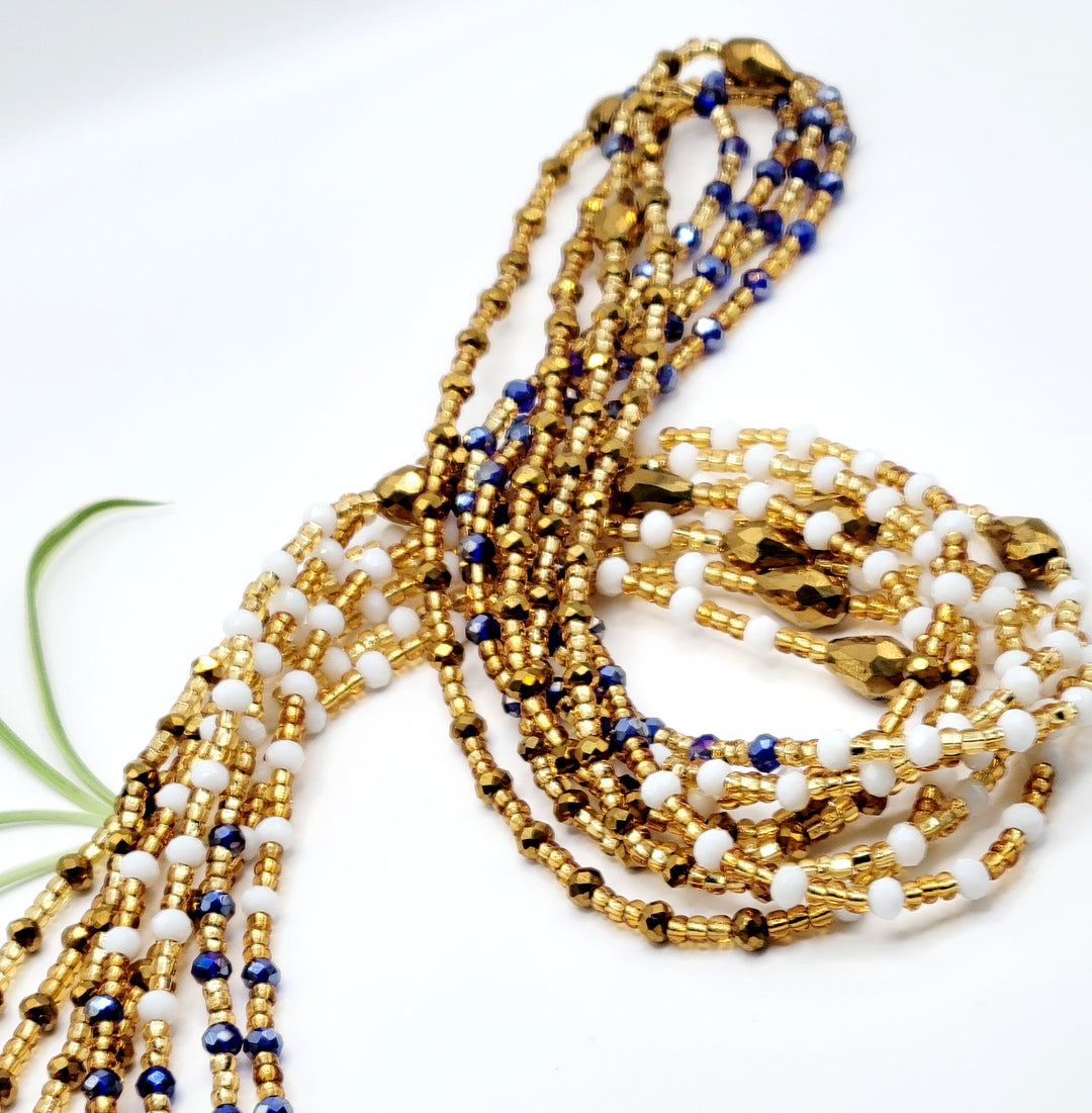 Adorn your waist in this authentically handcrafted ahene with traditional beads are crystals as a reminder to keep your cool when life gets "hot".