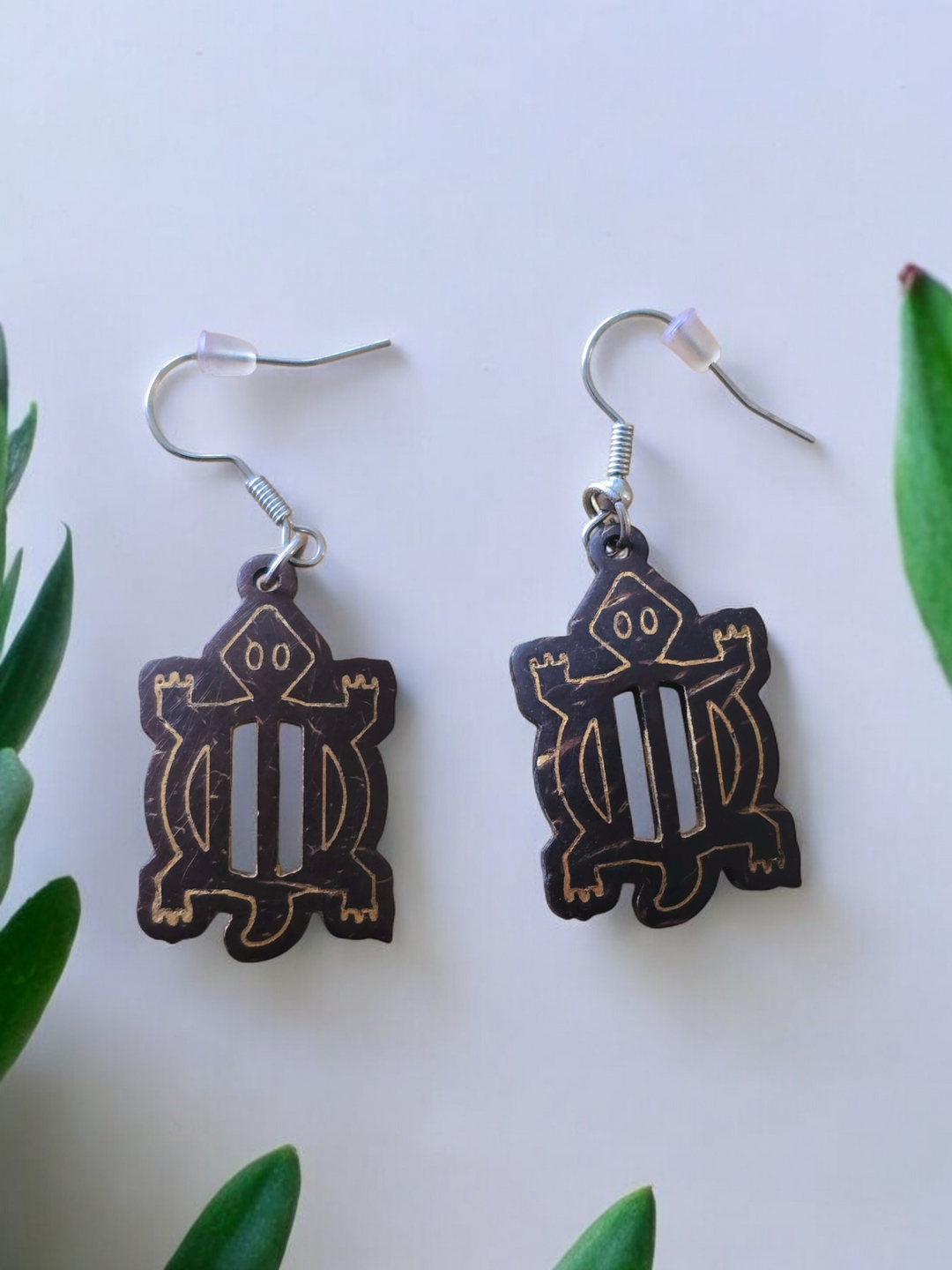 Meaning: "Crocodile" – a creature that can thrive in water and on land, symbolizing versatility. These earrings are perfect for someone who embraces change and navigates life’s challenges with grace. They also represent the resourcefulness of artisans who transform coconut shells into wearable art.