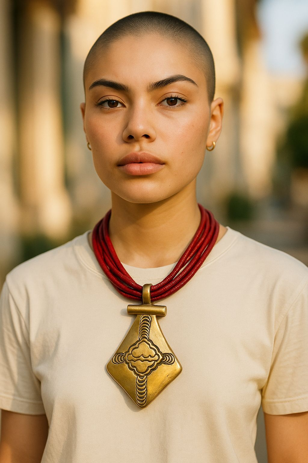 Step into bold elegance with the Royal Wisdom Pendant, a handcrafted statement piece by our Fair Trade Partner, Fulera. This necklace features strands of rich crimson beads, finished with a striking brass pendant inspired by traditional West African design.
